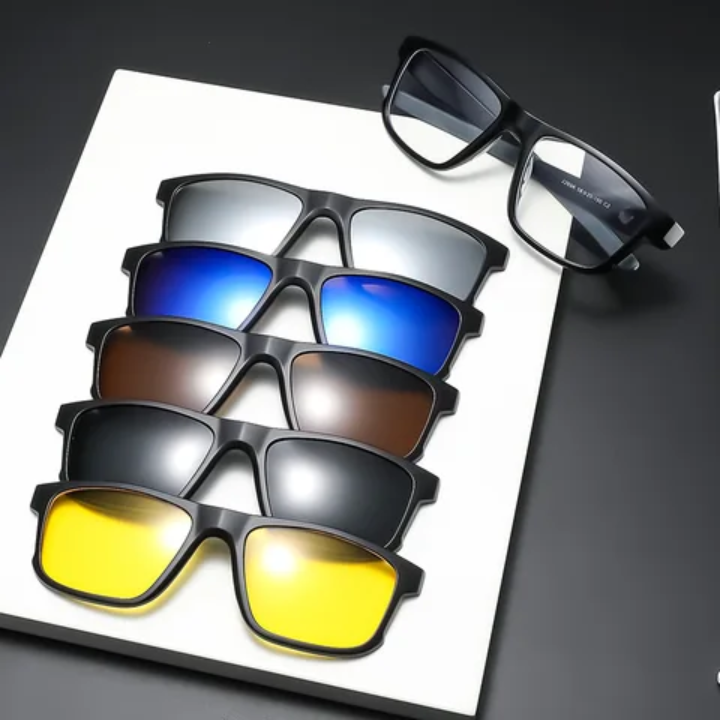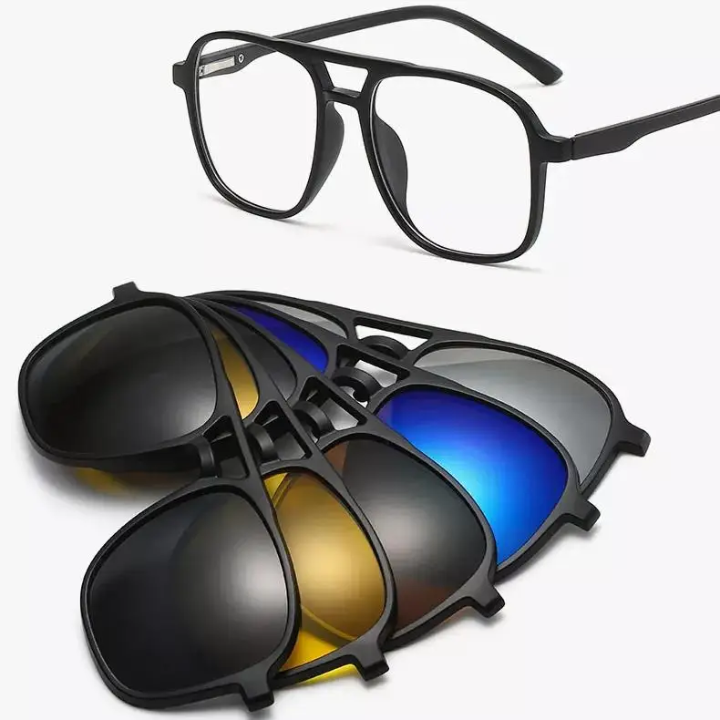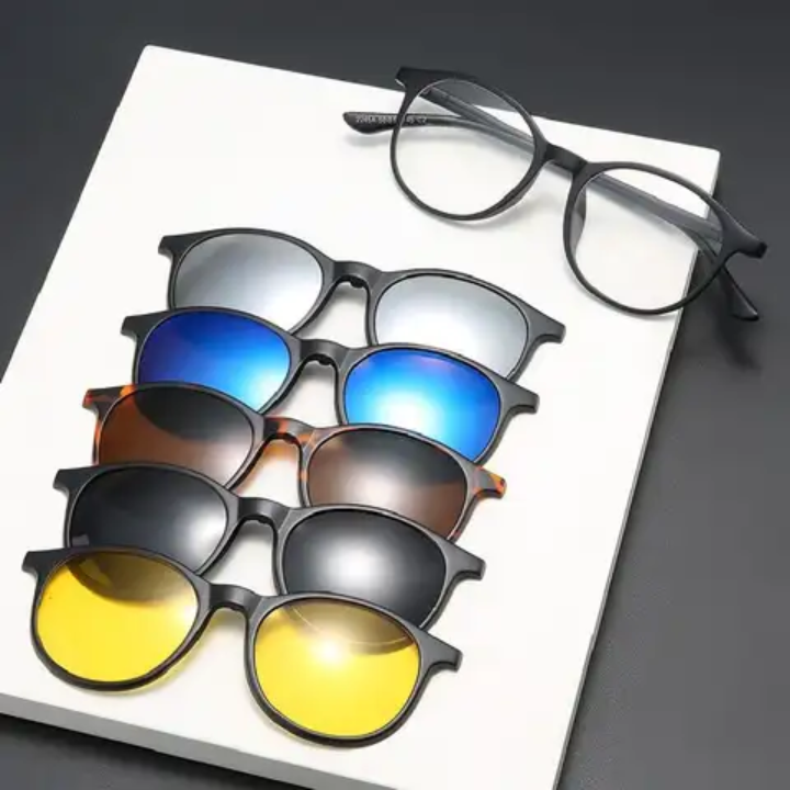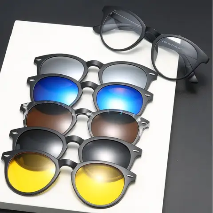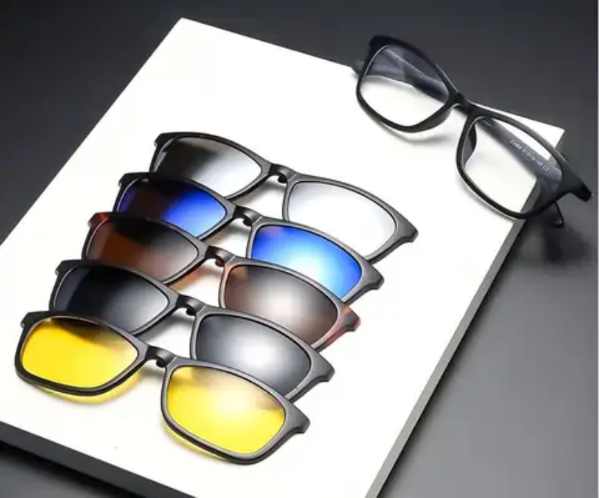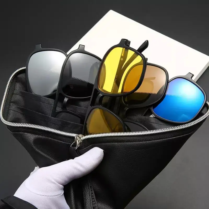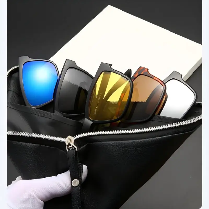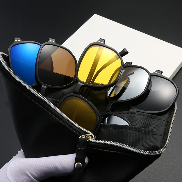 Clip-on polarized sunglasses designed to fit easily over prescription eyeglasses, providing a smart and practical solution for daily use. Compatible with most eyeglass frames and suitable for driving and outdoor activities. The polarized lenses reduce glare and reflections from roads and sunlight, offering clearer vision and better eye comfort. Available in multiple lens colors and can be easily attached or removed as needed.