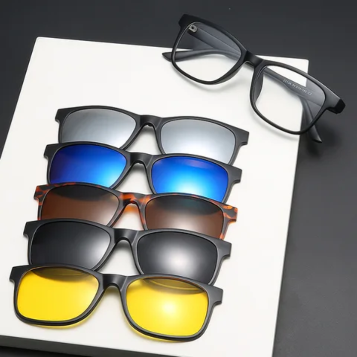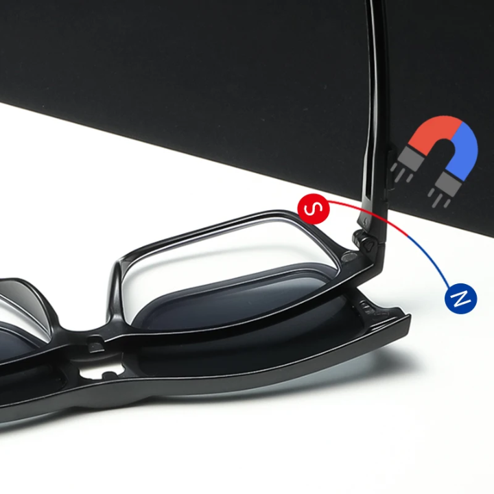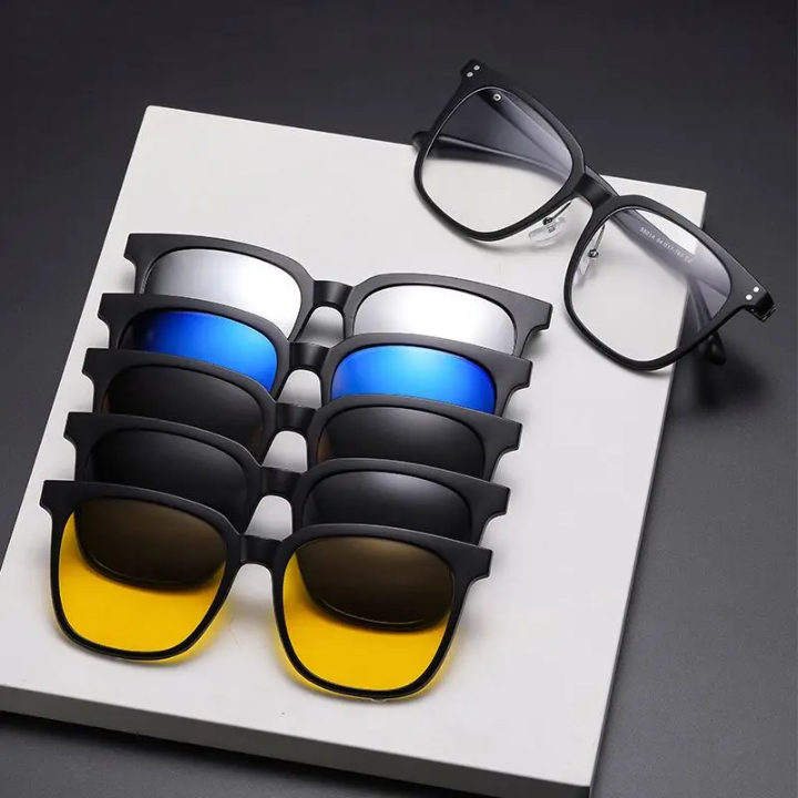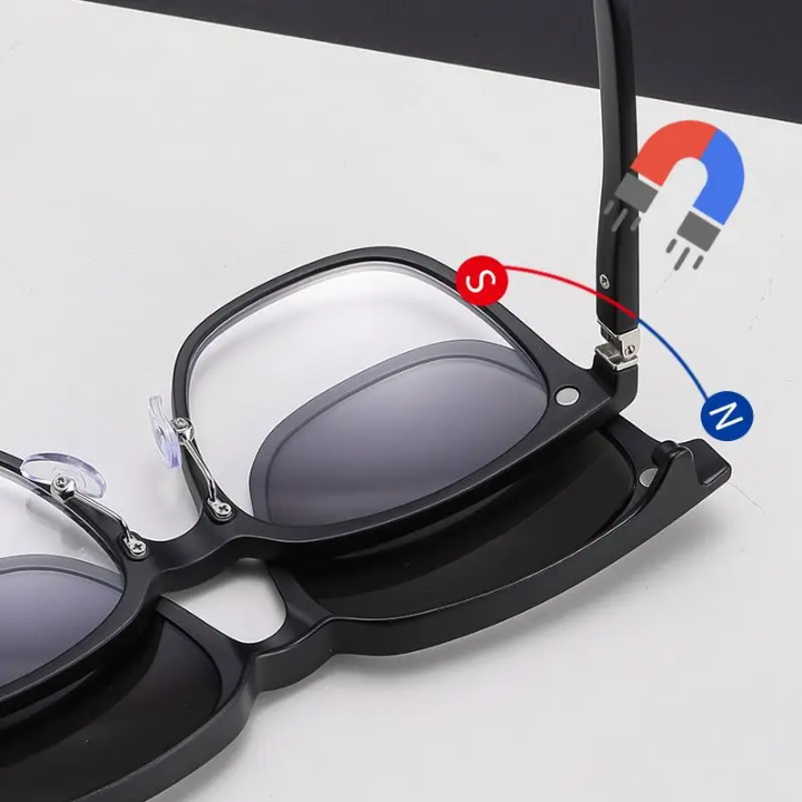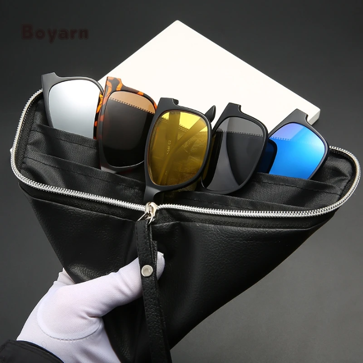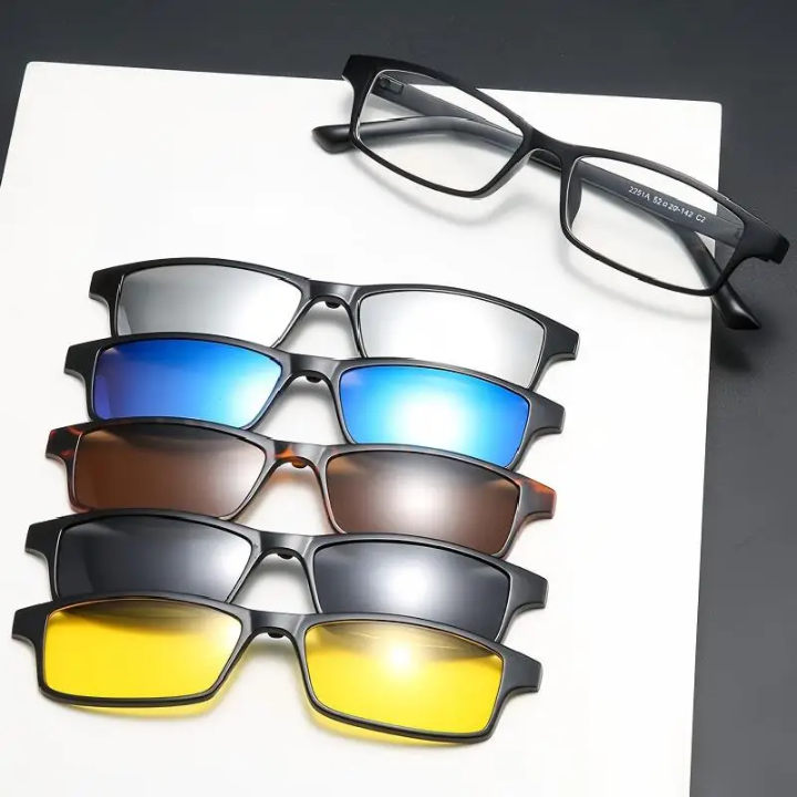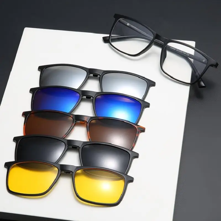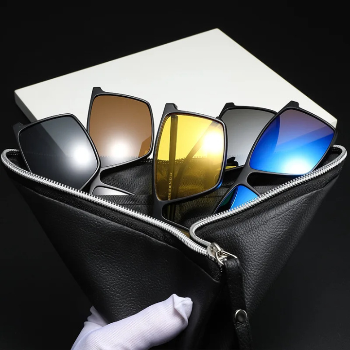Clip-on polarized sunglasses designed to fit easily over prescription eyeglasses, providing a smart and practical solution for daily use. Compatible with most eyeglass frames and suitable for driving and outdoor activities. The polarized lenses reduce glare and reflections from roads and sunlight, offering clearer vision and better eye comfort. Available in multiple lens colors and can be easily attached or removed as needed.