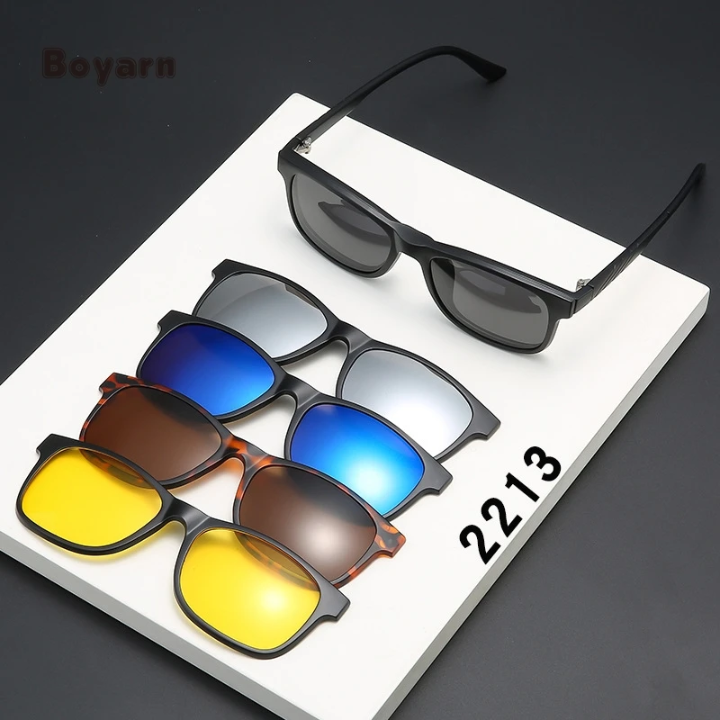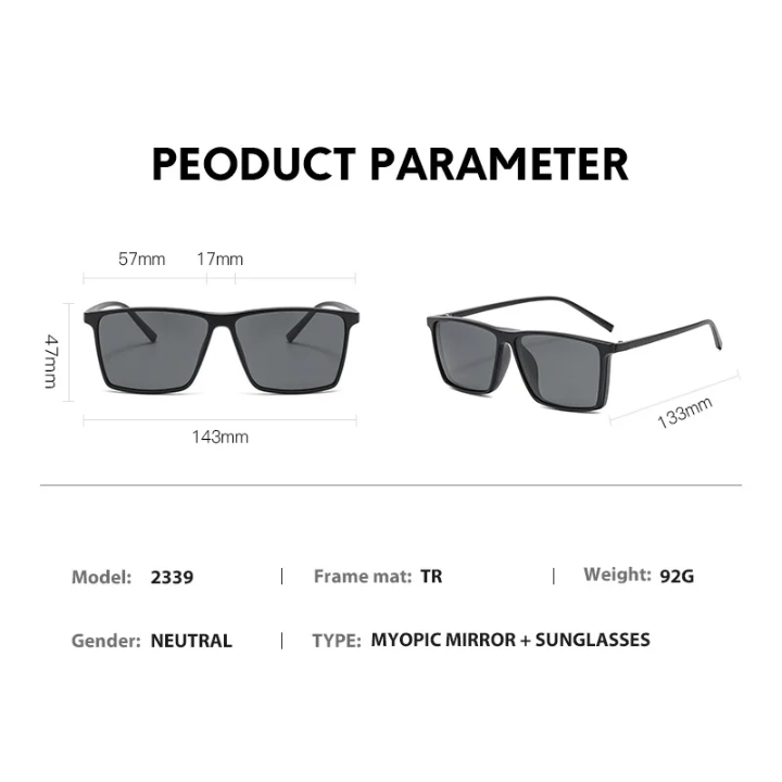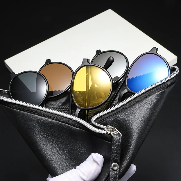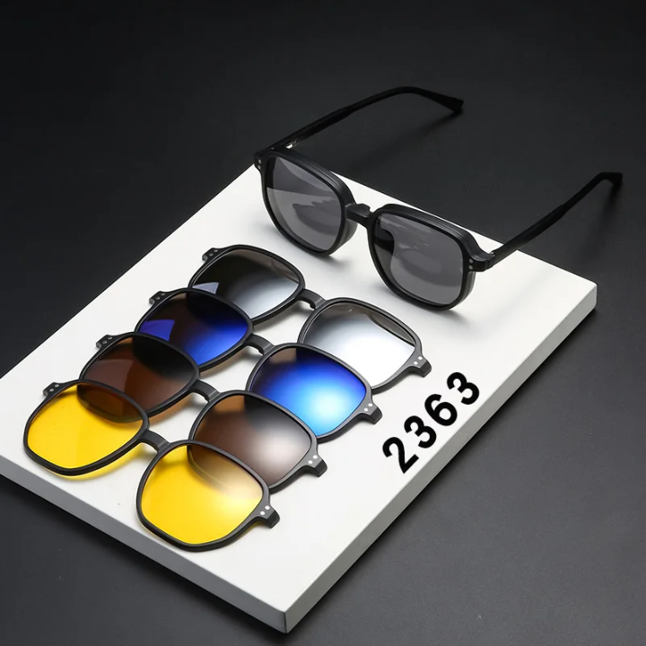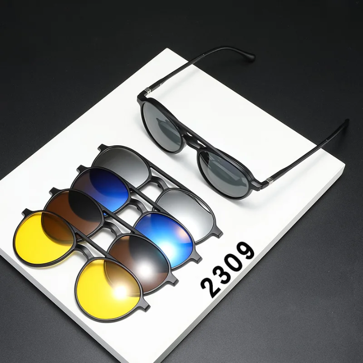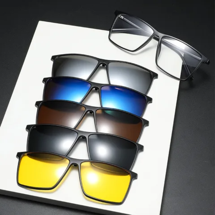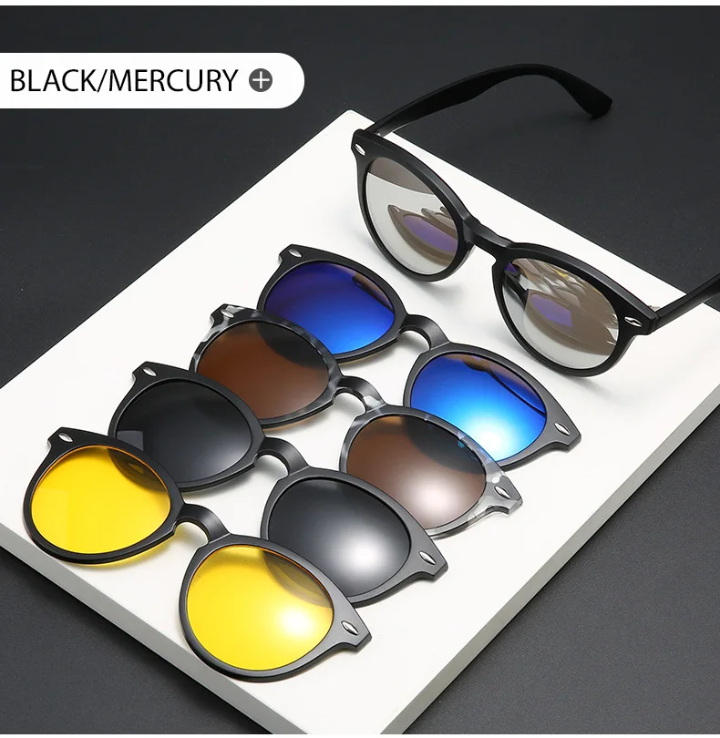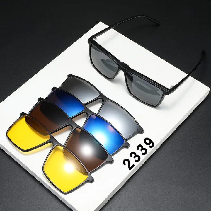 Clip-on polarized sunglasses designed to fit easily over prescription eyeglasses, providing a smart and practical solution for daily use. Compatible with most eyeglass frames and suitable for driving and outdoor activities. The polarized lenses reduce glare and reflections from roads and sunlight, offering clearer vision and better eye comfort. Available in multiple lens colors and can be easily attached or removed as needed.